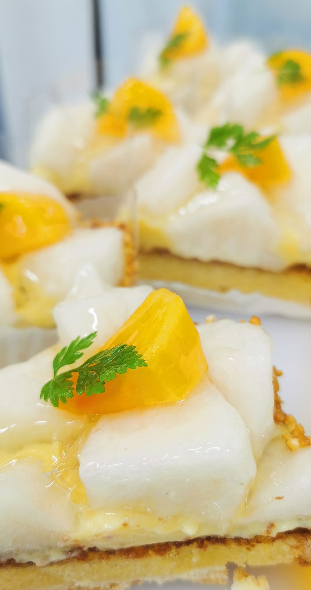 冷蔵庫で熟成させると更に糖度が上がり、タルト台に塗った自家炊きのカスタードクリームのコクと相まって